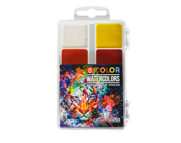 Water colors OSIRIS, 8 colors, honey, without brush