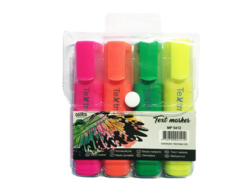 Text marker, 1-5mm, set, 4 colors: yellow, orange, green, pink, Osiris