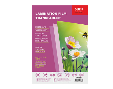 Laminēšanas plēve A3, 2x100micr, glancēta,100gab., Osiris