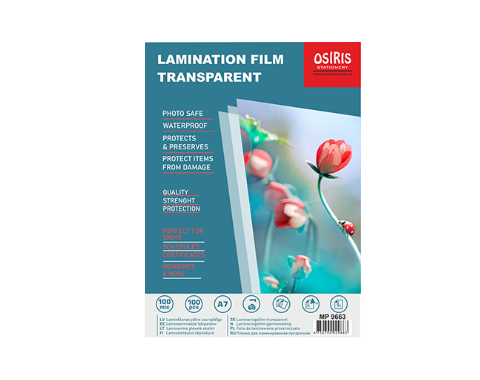 Laminēšanas plēve A7, 2x100micr, glancēta,100gab.Osiris