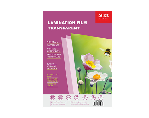 Laminēšanas plēve 60x90mm, 2x125micr, glancēta,100gab. Osiris